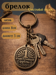 Брелок "Счастливый рубль" - это стильный и функциональный аксессуар, который станет отличным подарком для любого человека. Изготовленный из латуни, он обладает прочностью и долговечностью, что гарантирует его сохранность на протяжении долгого времени.