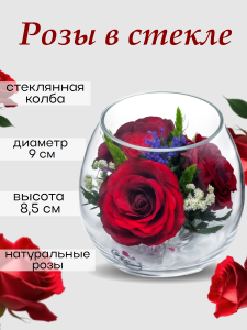 Цветы стабилизированные Розы в стекле BmiR (9 см) Натуральные стабилизированные цветы в вакууме - описание товара