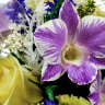 Состав композиции: {"Настоящие розы","Настоящие орхидеи",Декоративные элементы,Стеклянная колба}.