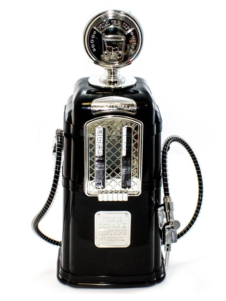 Диспенсер для напитков в виде бензоколонки в стиле ретро. Внутри имеет два отделения объёмом по 1 литру и 2 шланга для розлива напитков. Шланги сделаны под заправочные пистолеты. В комплекте идёт крышка.