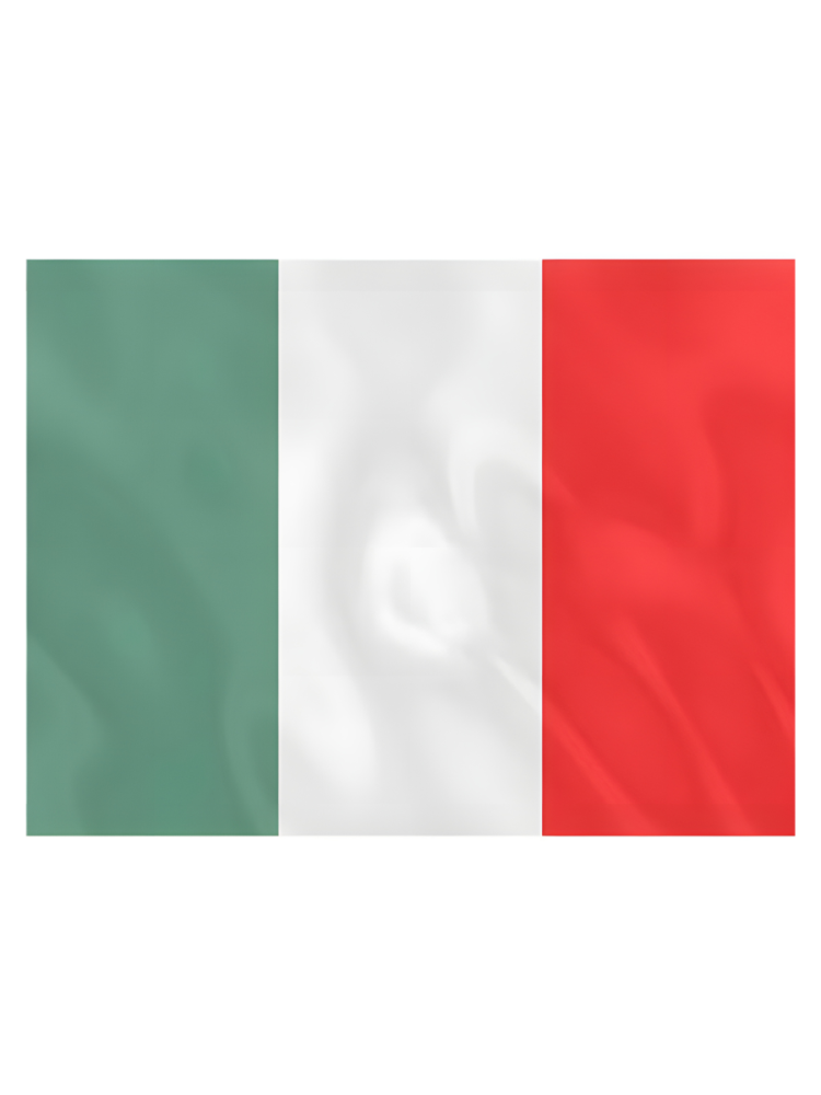 Итальянский флаг сделан из полиэфирного материала под названием «флажный шёлк». Это полиэфирное полотно подходит для домашнего хранения и уличного ношения, но не рекомендуется для длительного вывешивания на улице (со временем ткань может истрепаться на порывистом ветру). Для дополнительной сохранности стороны флага обработаны двойным швом в подгибку. Уменьшение цветности на обратной стороне флага составляет около 20% (основная сторона чуть более яркая). В левой части флага предусмотрен зашитый сверху карман для древка диаметром до 3,5 см.