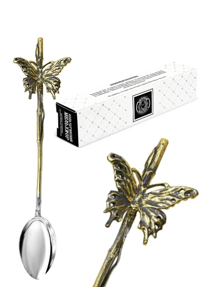 Чайная ложка "Бабочка" латунная с посеребребрением (17 см) - описание товара