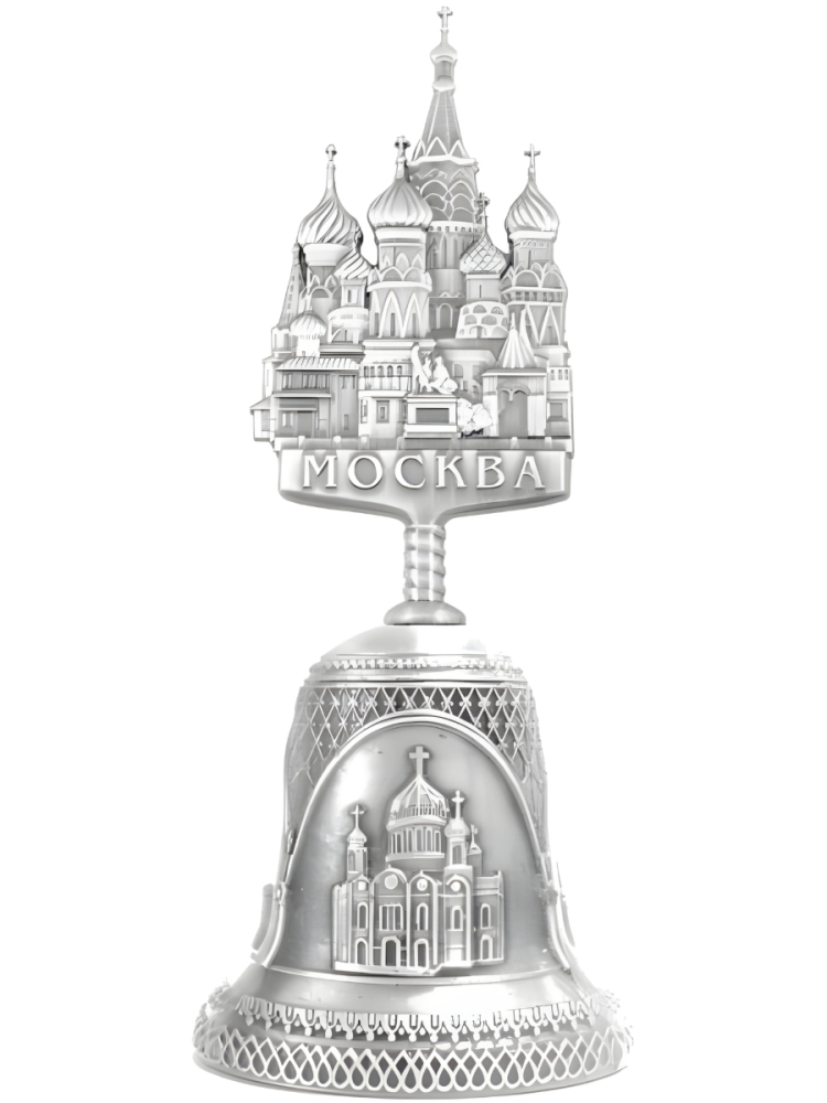 Колокольчик с навершием в виде храма Москвы станет отличным сувениром для любителей Москвы и ее достопримечательностей.