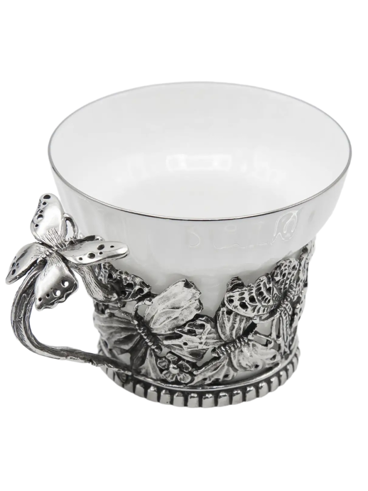 Чашка фарфоровая "Бабочки" посеребренная с чернением (150 мл) - описание товара