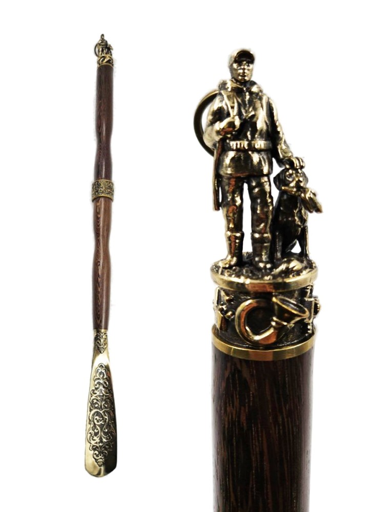 Обувная ложка "Охотник с собакой" из бронзы и дерева венге (72 см) - описание товара