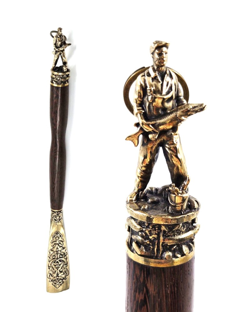 Обувная ложка "Рыбак с рыбой" из бронзы и дерева венге (50 см) - описание товара