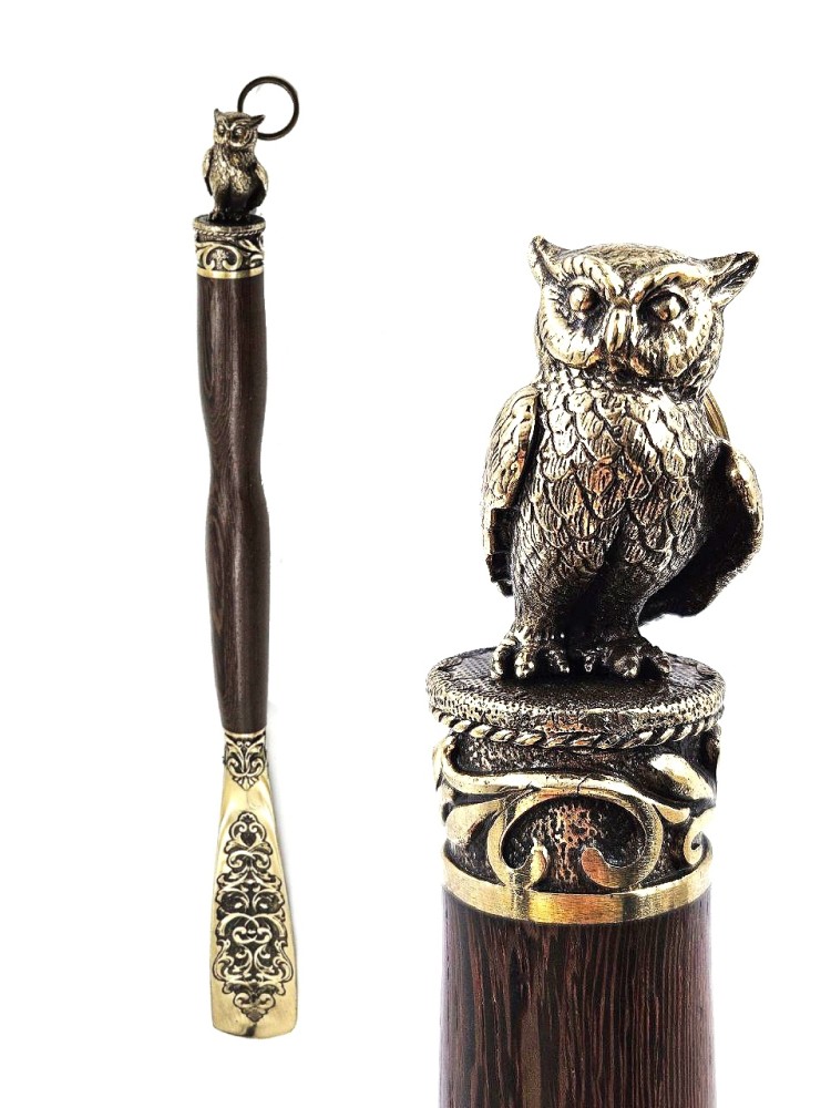 Обувная ложка "Сова" из бронзы и дерева венге (50 см) - описание товара