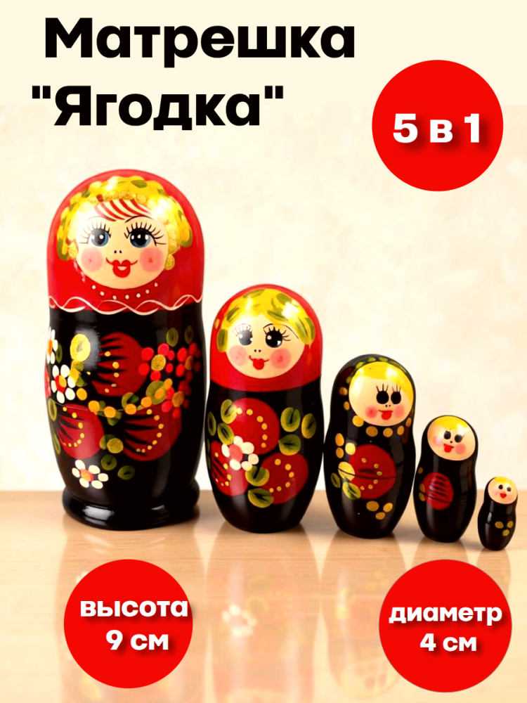 Матрешка деревянная "Ягодка" разборная (5 мест, 9 см) - описание товара