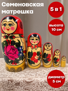 Семеновская матрешка в красном платочке (5 мест, 10 см) - описание товара