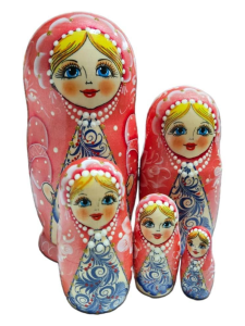 Счастливый случай Матрешка "Узоры" (5 мест, 17 см) розового цвета