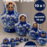 Матрешка "Зимние узоры" включает в себя 10 куколок, каждая из которых имеет свое уникальное место.