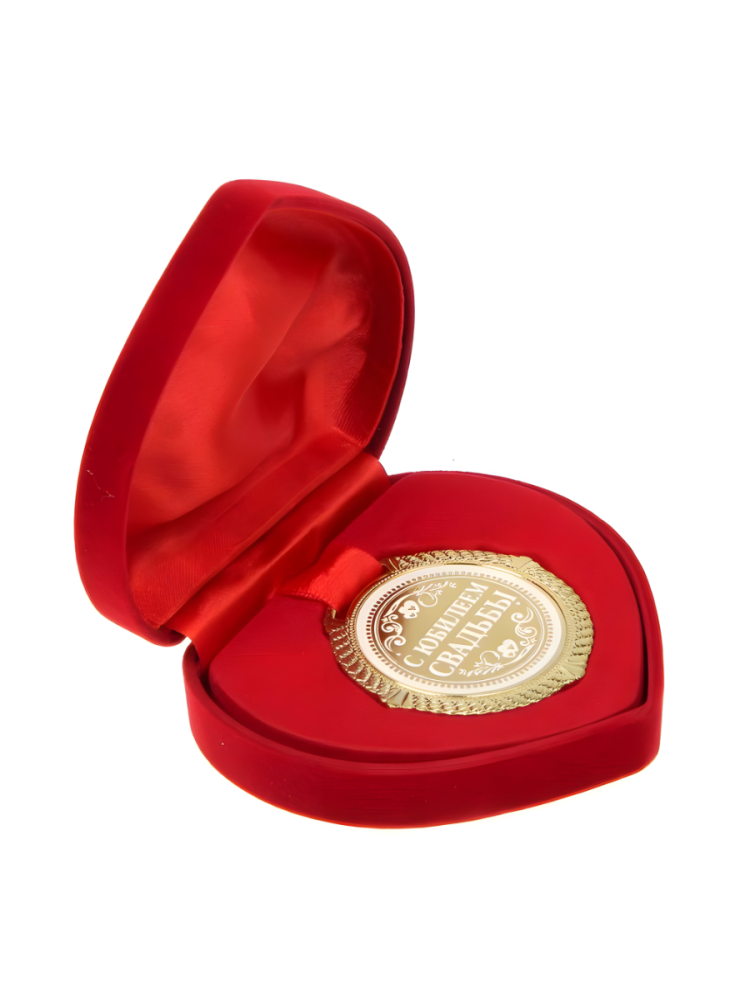 Медаль упакована в бархатную коробку в виде сердца, что придает ей особый шарм и делает ее отличным подарком. В комплекте с медалью идет лента, которая позволяет легко прикрепить ее к одежде или сумке.