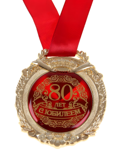 Медаль на ленте "С юбилеем 80 лет" (в бархатной коробке) - описание товара