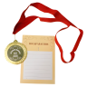 Медаль поставляется с лентой в комплекте, что позволяет сразу же надеть ее на шею. На открытке можно написать собственные пожелания, что сделает подарок еще более личным и значимым.