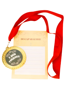 Медаль на красной ленте "С днем рождения" (с открыткой) - описание товара