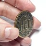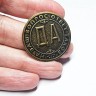 Прочный металлический диск диаметром около трёх сантиметров и выполненным в благородном медном оттенке. Компактный формат идеально подходит для хранения в кошельке, портфеле или как элемент ювелирного дизайна.
