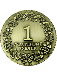 Монета латунного цвета "Счастливый рублик" (диаметр 4 см)