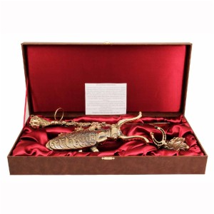Рожок для обуви "Лев" с креплением и съемником в футляре - это стильный и функциональный аксессуар для ухода за обувью. Изготовленный из бронзы, этот продукт отличается прочностью и долговечностью.