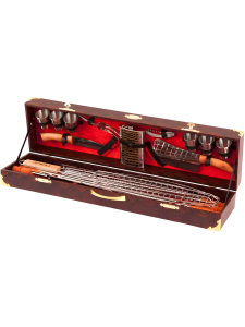 Набор для шашлыка "Профессионал" поставляется в удобном деревянном кейсе, который обеспечивает безопасное хранение и транспортировку всех предметов.