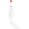 Набор включает в себя 6 шампуров длиной 56 см, складной мангал (скобы), решетку для приготовления рыбы размером 36 х 12 см, разделочный нож длиной 16 см, топорик размером 16,5 х 9 см, вилку для мяса, штопор с открывашкой, фляжку объемом 250 мл и 6 металлических стопок по 30 мл.