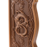Нарды «Дракон» из массива бука — это подарочные деревянные резные нарды размером 57 x 28 x 5 см. Изготовлены из натуральных материалов: корпус — массив бука, фишки — шпон красного дерева и граба, а для эффекта старины используется декоративная патина.