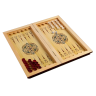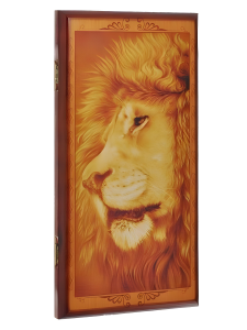 Крышка нарды украшена орнаментом и изображением льва, что делает внешний вид набора еще более привлекательным.