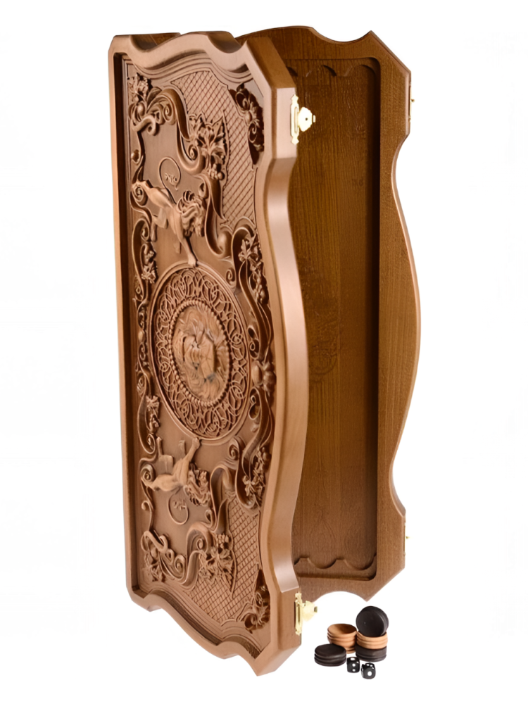 Фигурный корпус "Лев" придает нардам уникальный и неповторимый вид. Выжигание на корпусе добавляет изделию изысканности и шарма.