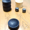 В комплект входят 30 фишек, два зарика и пластиковая упаковка. Внешний рисунок выполнен в виде резьбы, а внутренний — выжиганием. Лузы для фишек обеспечивают комфортное и безопасное перемещение игровых элементов.