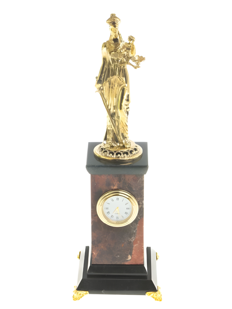 Настольные часы "Фемида" из бронзы и яшмы (29 х 8 х 8 см) - описание товара
