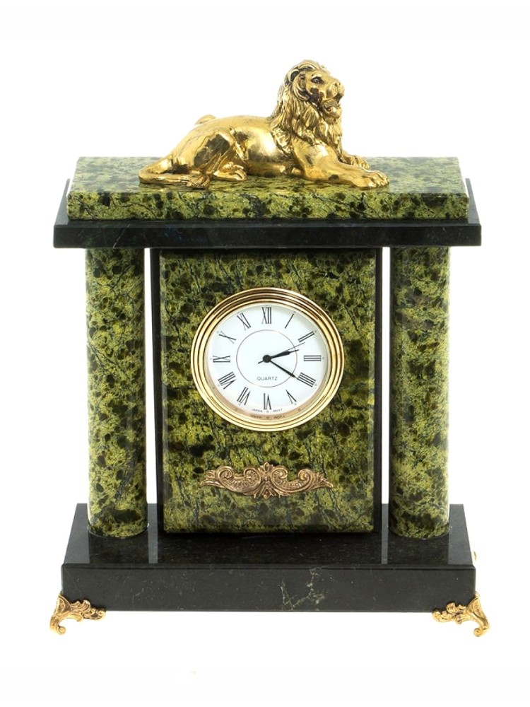 Настольные часы "Львиные" из бронзы и змеевика (21 х 16 х 7 см) - описание товара