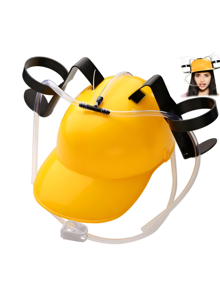 Каска пивная желтая – оригинальный головной убор, предназначенный для тех ленивых особ, которые не хотят даже поднести бутылку напитка к губам.