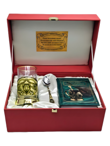 Набор "Руководитель" (подстаканник, стакан, ложечка, книга афоризмов) в красном футляре - описание товара