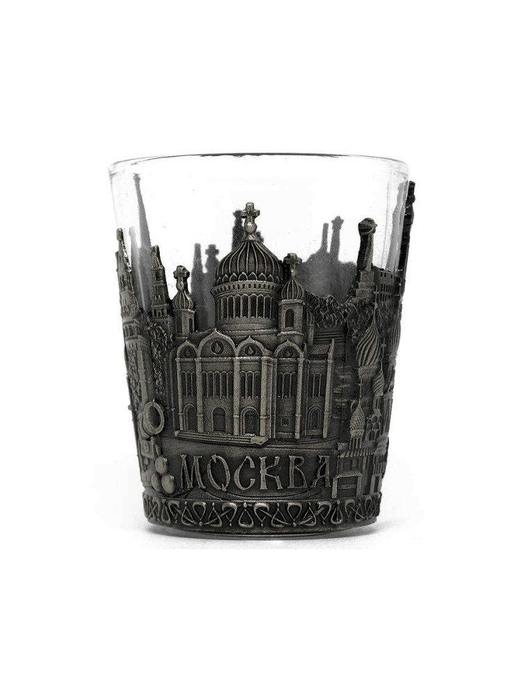 Подарочная стеклянная рюмка "Москва" в металлическом каркасе, 50мл - описание товара