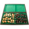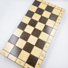 Доска для игры выполнена из дерева и шпона темных и светлых пород дерева, что придает ей прочность и долговечность. Внешний рисунок - маркетри (инкрустация), что делает каждую доску уникальной.