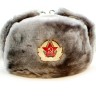 Сувенирная шапка-ушанка серого цвета (искусственный мех) - описание товара