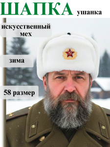 Сувенирная шапка-ушанка белого цвета из искусственного меха (58 размер) - описание товара