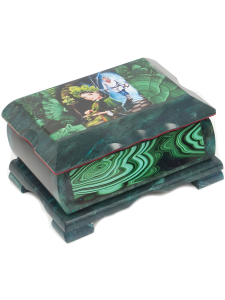 Шкатулка "Горная" из змеевика с оформлением под малахит (15 х 9 х 7 см) - описание товара