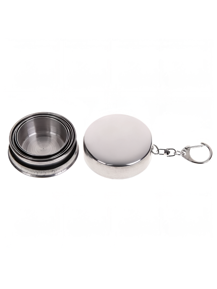 Размер: 6 x 5 x 5 см; Материал: Нержавеющая сталь; Объем: 50 мл; Упаковка: Картонная коробка. Идеальный аксессуар для любителей путешествий и активного отдыха на природе. Объем 50мл позволяет взять стакан с собой, не занимая много места. Благодаря карабину, его можно легко прикрепить к рюкзаку или одежде. 290
