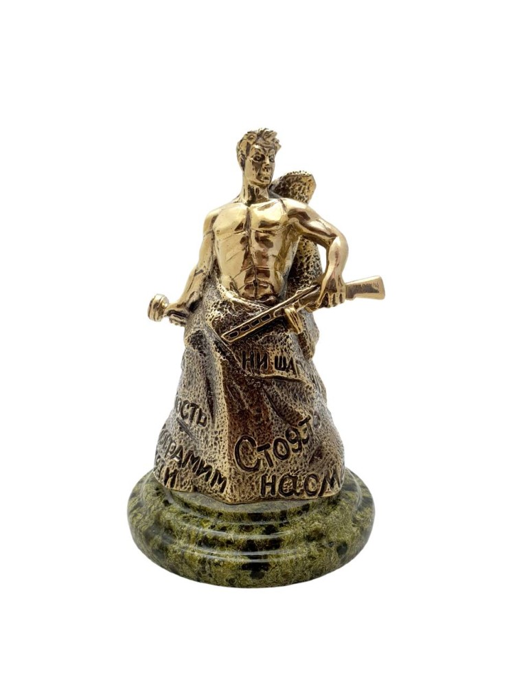 Статуэтка "Солдат - Стоять насмерть" представляет собой уникальное произведение искусства, выполненное из латуни и змеевика. Этот предмет станет отличным подарком для любителей истории и военной тематики.