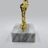 Статуэтка установлена на мраморной подставке, которая подчеркивает её статусность и устойчивость. Высота статуэтки составляет 11 см, что делает её отличным выбором для награждения победителей или украшения интерьера.