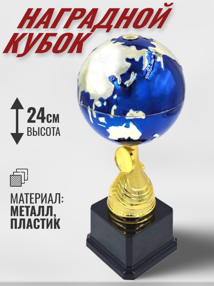 Изысканный наградной кубок в форме земного шара — это величественный символ успеха, амбиций и стремления к покорению новых горизонтов. Элегантное сочетание глобуса и классического дизайна делает этот трофей по-настоящему уникальным.