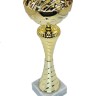 Основание кубка выполнено из мрамора белого цвета, что обеспечивает устойчивость и подчеркивает его статусность. На основании предусмотрено место для гравировки, что делает кубок уникальным и персонализированным. Этот кубок станет достойным призом для победителей соревнований или торжественных мероприятий, символизируя успех и признание.