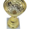 Этот элегантный наградной кубок высотой 16 см и диаметром чаши 8 см выполнен из металла с золотистым покрытием, что придает ему роскошный и торжественный вид. Чаша кубка украшена изысканным декором в виде ручек колосьев, которые плавно переходят от основания к краям, создавая эффект утонченности.