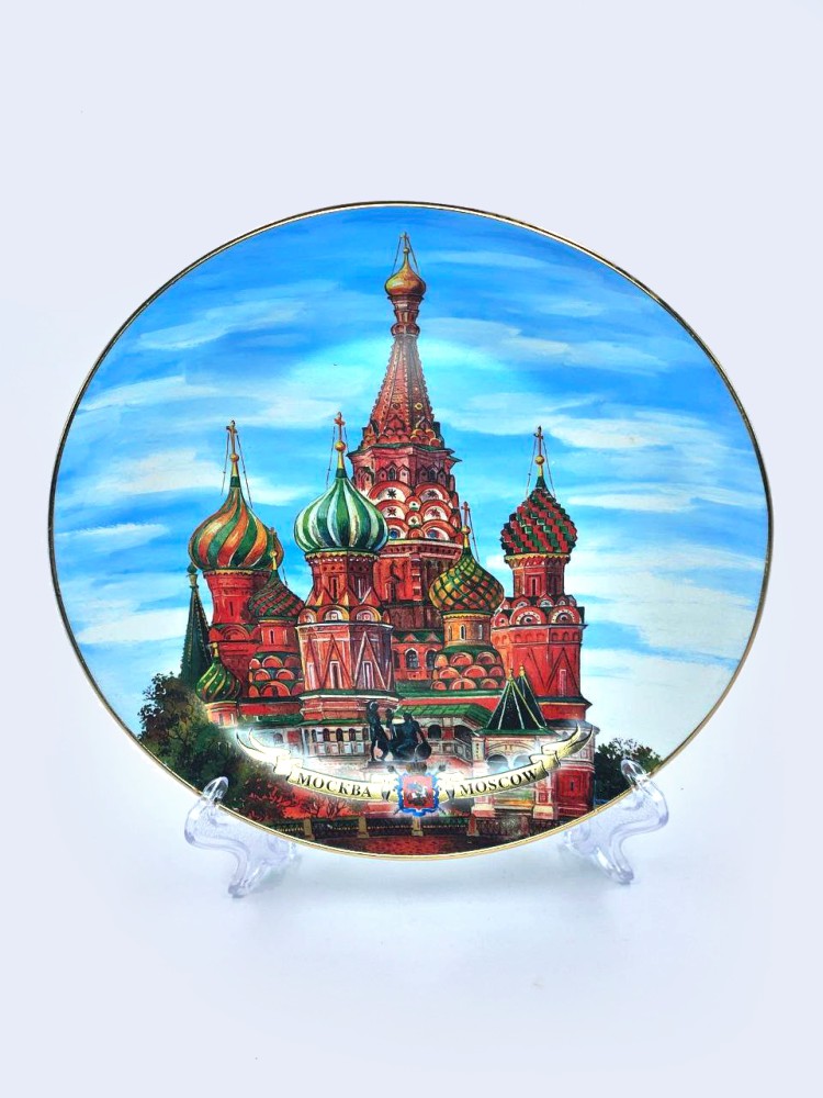 Сувенирная тарелка "Купола Собора Василия Блаженного" из фарфора (20 см) - описание товара