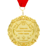 Медаль изготовлена из металла, что гарантирует ее долговечность и прочность. Диаметр медали составляет 7 см, что делает ее заметной и привлекательной. Золотистый цвет медали придает ей особый шик и блеск.