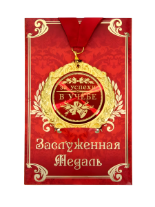 Медаль с лентой "За успехи в учебе" на открытке (7 см) - описание товара