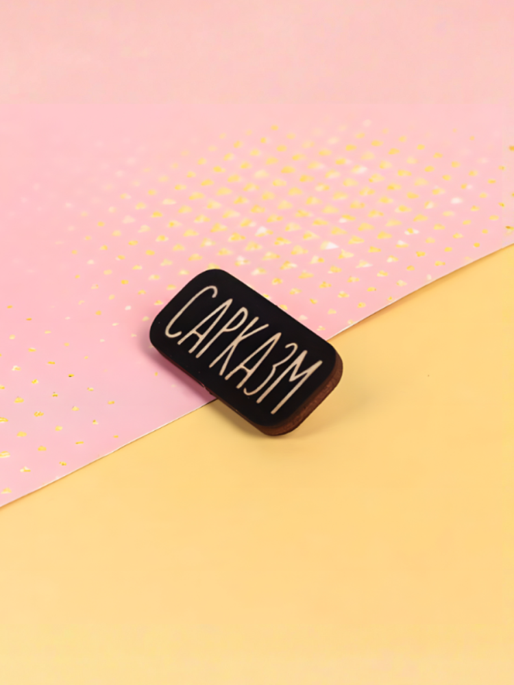 Деревянный значок "Сарказм" - описание товара