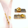 Крепление значка выполнено в виде цангового зажима, что обеспечивает надежное и прочное крепление на любой поверхности.