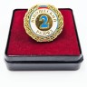 Значок «2-й юношеский разряд» представляет собой круглый металлический знак с золотистым покрытием. В центре значка изображена крупная красная цифра «2», символизирующая второй разряд. Вокруг цифры размещён текст «ЮНОШЕСКИЙ РАЗРЯД». По краю значка проходит декоративный лавровый венок, символизирующий победу и достижение.