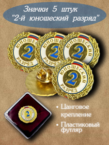 Комплект значков "2-й юношеский разряд" в пластиковом футляре, 5 шт. - описание товара